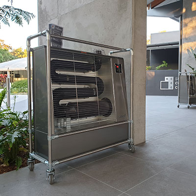 Diesel Heaters are an ideal solution for providing heating in larger spaces and perfectly suited for warehousing or industrial applications. As the radiant heat energy generated by the diesel heater is directional, and unaffected by the medium it travels through, it does not lose energy as it travels through the air. Radiant heat waves are absorbed by the solid objects they contact providing a highly efficient heating solution.