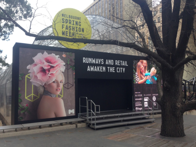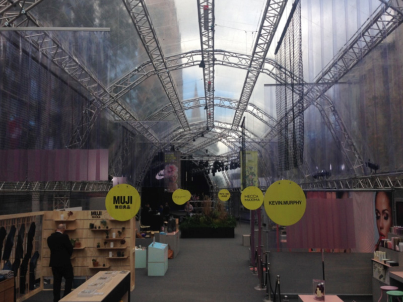 For the 2014 Melbourne Spring Fashion Week Cool Breeze Rentals were involved as there were intricate design details of the amazing City Square truss structure erected each year. The challenge that presented itself with this event is that all cooling needed to be unobtrusive, come through the floor, fit into a budget and of course be effective! Cool Breeze Rentals delivered and installed for this event by utilising reducers to drop down the ducting from 600mm to 350mm and then protrude into the structure through the heart of the truss. This solution not only filled the brief given to us but filled the room with cold air!